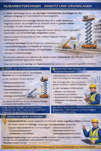 Ziel der Schulung ist es, die theoretischen Grundlagen für einen sicheren Umgang mit Hubarbeitsbühnen zu vermitteln.