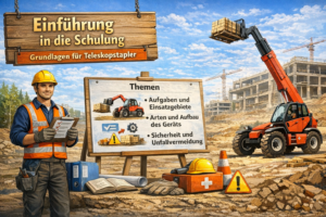 Diese Inhalte vermitteln dir das notwendige Wissen, um den Teleskopstapler sicher, verantwortungsvoll und unfallfrei zu bedienen.